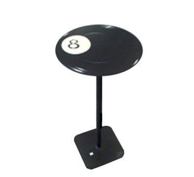 Black finished wood pub table. The top is 42" diameter and it is 42" high. The turned pedestal base has four fluted legs. A great addition to any game room or anywhere a dining table just will not fit.