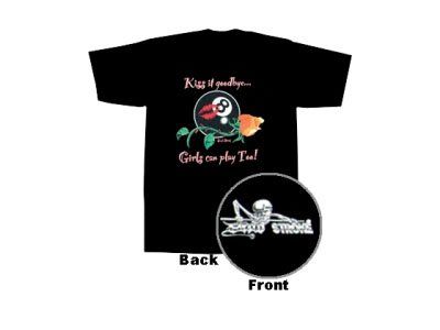 Short sleeve black tee shirt with a left breast pocket. Features “For Those About to Rack” design on the back of shirt. It is made of 100% cotton. Size: Medium.