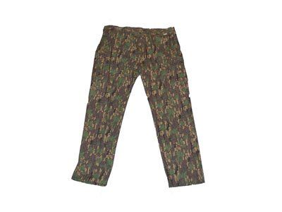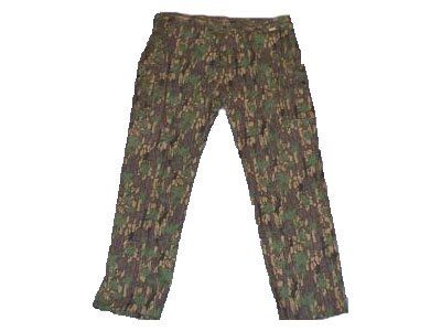 One piece, five-pocket coverall of soft, 100% ripstop cotton. The Trebark II pattern provides maximum concealment. Five pockets and main zipper designed to prevent any interruption of the pattern. Side slots for access to inside pant pockets, and built-in elastic waist eliminates bagginess in the mid-section. We only have one pair of these in stock at this special price. Style #W450. Size Large.