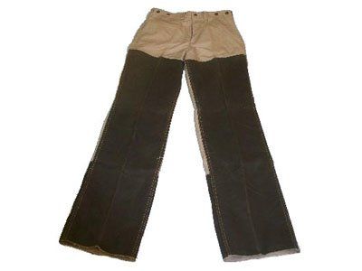 Filson's Shelter Cloth brush pants offer outstanding protection in the field. Made of 100% cotton dry finish. This pant combines the comfort of a dry finish shelter cloth with the protection of oil finish shelter cloth facing. Features double-sewn construction and bartacking at all stress points, front slash pockets, a watch pocket, and back pockets with flaps. Suspender buttons and a zipper fly. We only have 1 pair of these in stock at this special price. Style #575. Desert Tan with Dark Green facing. Size 32.