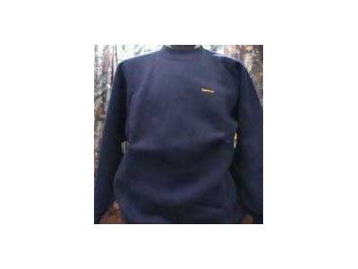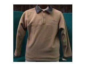 Polartec offers superior warmth without the weight. This material is highly breathable. The Polartec pullover is versatile for use as a warm mid-layer or functional outerwear. Khaki with dark green micro suede trim on sleeves and collar. Has two snaps at neck. We have one of these available at this special price. Size: Medium.
