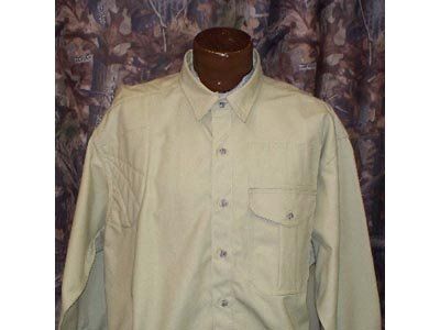 Filson's long sleeve tin cloth shooting shirt is 11-ounce 100% cotton duck. This shirt provides the maximum in ruggedness and durability while still maintaining the comfort of cotton. This shirt has an added shooting pad and shell pockets. It is the toughest hunting shirt available. Filson's style #756. Machine washable. We only have one of these available at this special price. Khaki Style #756 size XXXL.