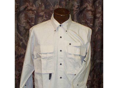 Lewis Creek’s long sleeve fishing shirt is made of 100% premium grade long staple Egyptian cotton. This shirt has a button back sleeve tab with washable leather trim, triple pleated grommet cargo pockets with extension bellows, and a secure rod holder loop on left pocket. We only have 1 of these available at this special price. Natural (1) Medium.
