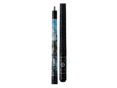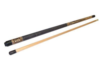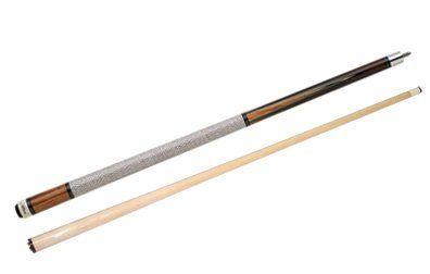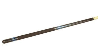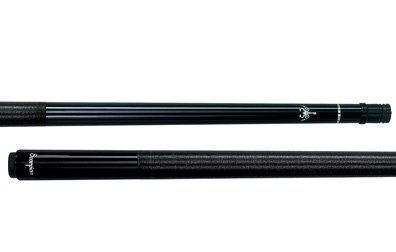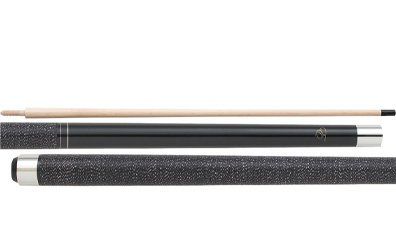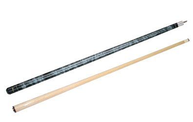 This is a one-piece 20 oz. Cuetec cue. The butt has a solid wood core covered with a black high-tech material with a non-slip grip. The warp resistant shaft is power bonded fiberglass with a super slim taper, a 13mm leather tip, and a polycarbonate ferrule. The Tru-Glide finish makes the use of hand talc unnecessary.