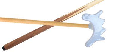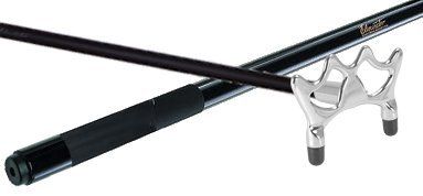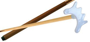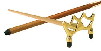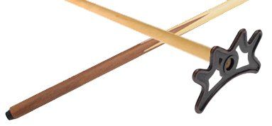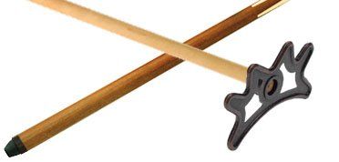 This is a bridge stick with a bronze bridge head on a one-piece solid maple cue. Available in 19 oz.