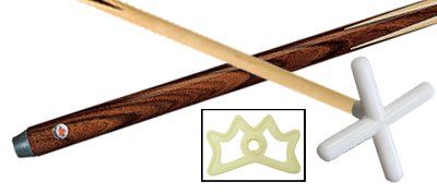 This is an economical bridge stick with your choice of either a plastic white crossbridge or regular style plastic bridge on an original one-piece Dufferin four-prong house cue. Available in 19 & 21oz. cues.