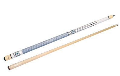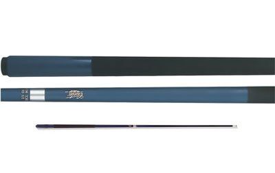 This is a one-piece Cuetec 19oz. cue. The butt has a solid wood core covered with a blue high-tech material with a non-slip grip. The warp resistant shaft is power bonded fiberglass with a super slim taper, a 13mm leather tip, and a polycarbonate ferrule. The Tru-Glide finish makes the use of hand talc unnecessary.