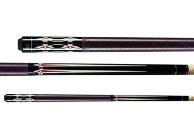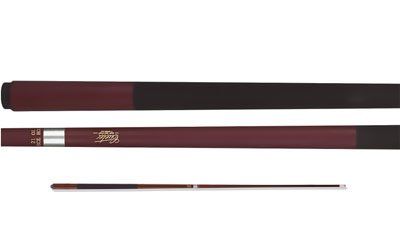 This is a one-piece Cuetec 21 oz. cue. The butt has a solid wood core covered with a burgundy high-tech material with a non-slip grip. The warp resistant shaft is power bonded fiberglass with a super slim taper, a 13mm leather tip, and a polycarbonate ferrule. The Tru-Glide finish makes the use of hand talc unnecessary.