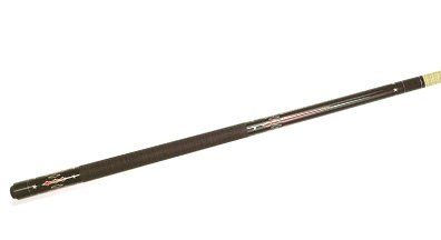 This is a one-piece 21 oz. Cuetec cue. The butt has a solid wood core covered with a burgundy high tech-material with a non-slip grip. The warp resistant shaft is power bonded fiberglass with a super slim taper, a 13mm leather tip, and a polycarbonate ferrule. The Tru-Glide finish makes the use of hand talc unnecessary.