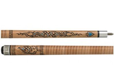 Features maple shaft with medium hard Le Pro tip on a fiber ferrule, forearm and bottom of butt has marbling design and black nylon wrap with white speckles. In-stock in blue with black marbling. Great stick for the junior player.