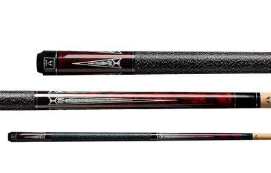 This is the Meucci Red Checker cue with an antique stained maple forearm and black speckled Irish linen wrap coated in lacquer. Features 3 sets of black and red checker bands set in white phenolic trimmed in silver. Includes a black dot laminated shaft with polycarbonate ferrule and a 12.75mm tip.