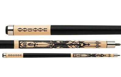 This Players 2-piece cue is made from 100% North American Grade A hard rock maple with a genuine black and white double-pressed Irish linen wrap. It features a classically styled, smoke-stained, birdseye maple forearm with four genuine, handcrafted natural inlay points, natural and midnight black ring sets and cream poly joint collar, butt and butt cap. Comes with high-impact ferrule and a high-quality French “Le Pro” tip for maximum ball control.