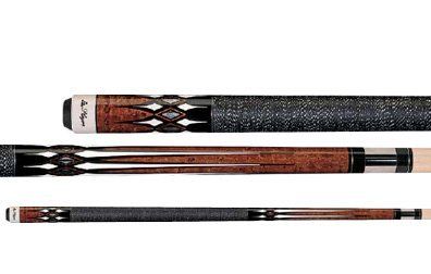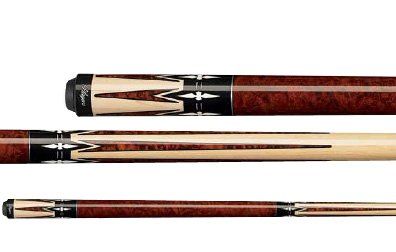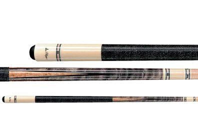 This Players 2-piece cue is made from 100% North American Grade A hard rock maple in antique-stained Birdseye maple with genuine black & white double-pressed Irish linen wrap. It features a four floating white, black and natural transfer points; midnight black butt sleeve with natural, white and black traditional transfers; single silver ring sets; and a stainless-steel joint collar. Comes with high-impact ferrule and a high-quality French Le Pro tip for maximum ball control.