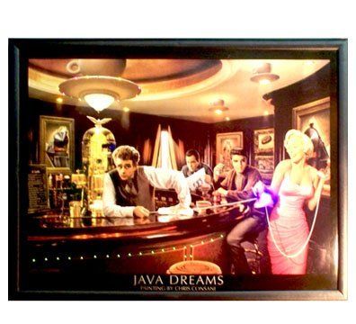"Boulevard of Broken Dreams" is an LED picture with small LED lights in it. Depicts Marilyn Monroe, Elvis Presley, James Dean & Humphrey Bogart in an old-style diner with the view of an empty boulevard. It measures 19" high by 25" wide.