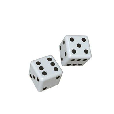 Pair of 2 white dice with the number dots in black. Measures 5/8" square. Great to replace dice in board games like backgammon, Yahtzee, monopoly and scores of others.