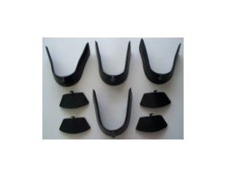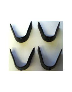 Set of black rubber facings that are attached to the end of the cushions before covering the rail cushions with pool table cloth.
